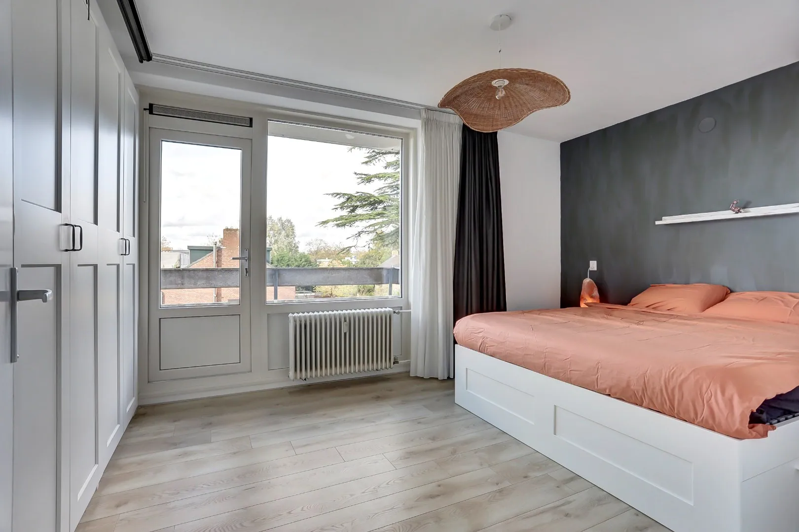 De twee slaapkamers zijn gelegen aan de voorzijde van het appartement. De grote slaapkamer heeft toegang tot het tweede balkon.