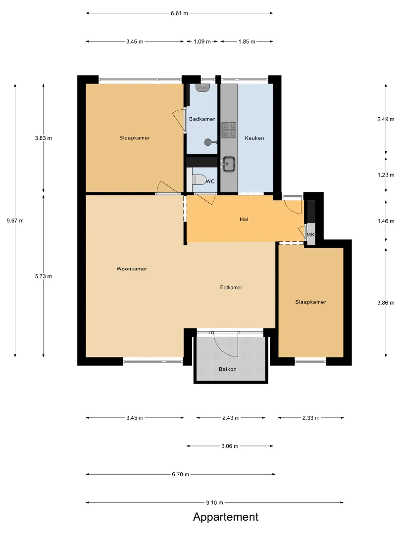 Instapklaar 3(voorheen 4) kamer appartement met royale living en moderne keuken, 2 slaapkamers en berging in de onderbouw.