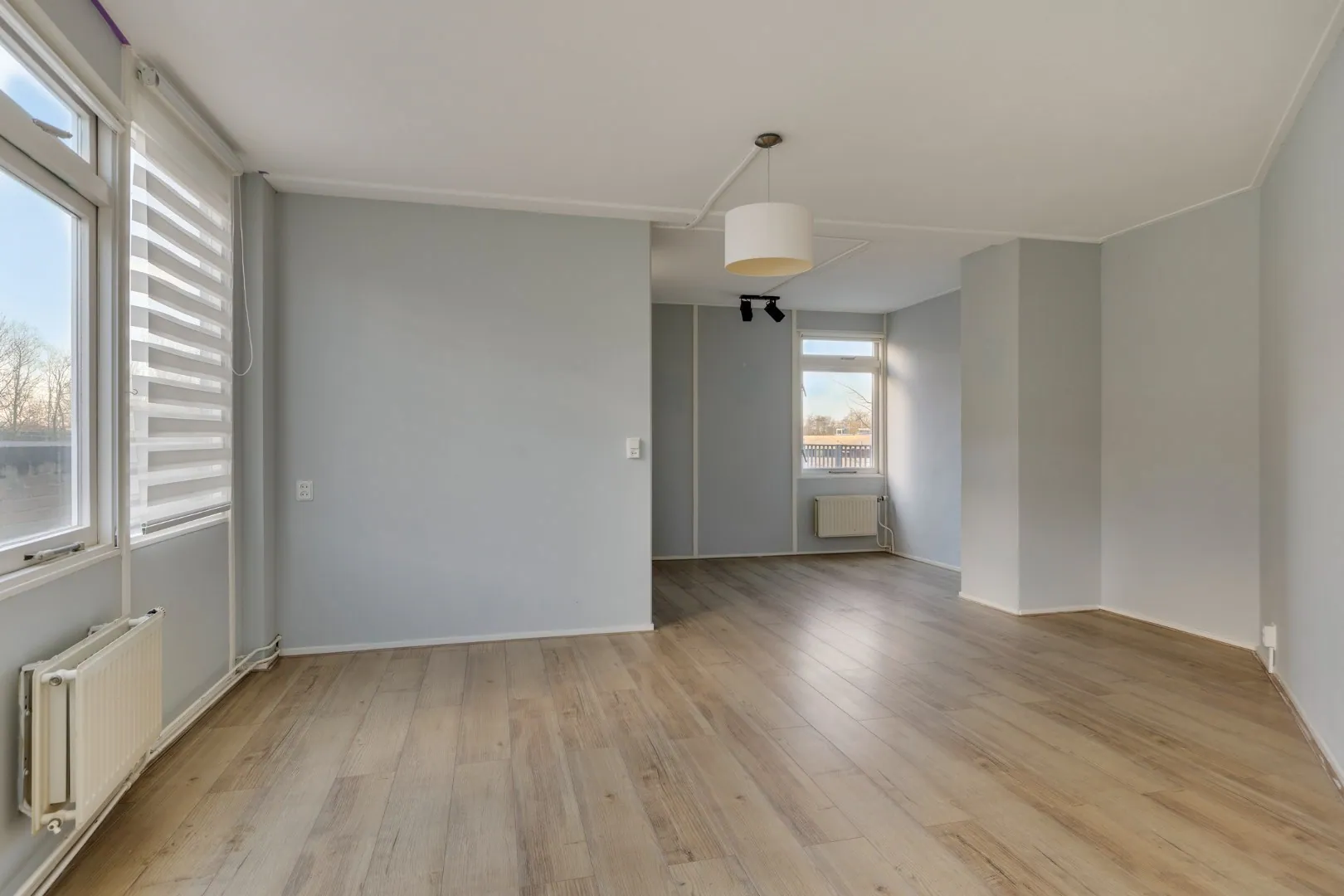 De gehele begane grond is voorzien van een doorgelegde laminaatvloer.