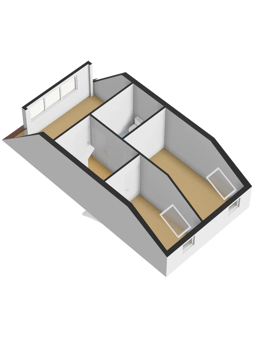 Vanaf de overloop zijn twee slaapkamers aan de achterzijde bereikbaar, beide voorzien van een raam en dakraam. Aan de voorzijde bevindt zich een derde kamer met dakkapel, vaste opbergkasten en wasmachineaansluiting, ideaal als werk-, hobby- of eenpersoons slaapkamer.