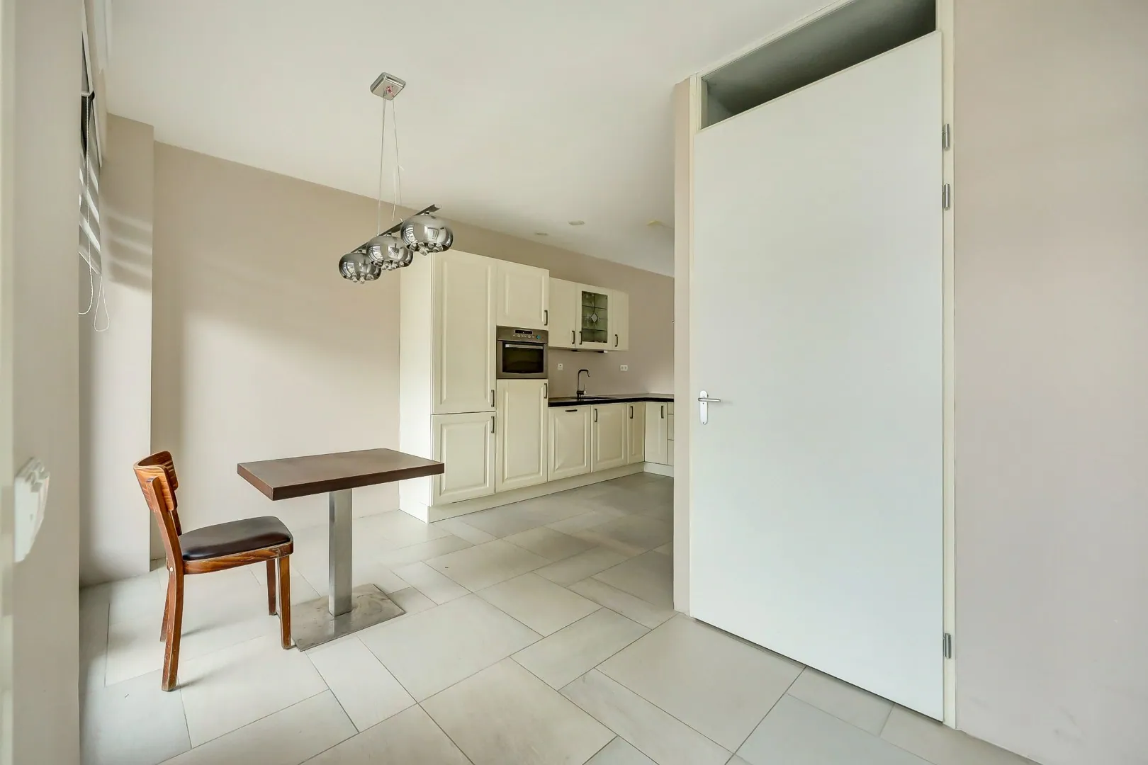 Via de entree/hal met meterkast betreedt u de woning. Aan de voorzijde bevindt zich de sfeervolle eetkamer met een deur naar de veranda. De centraal gelegen keuken in L-opstelling is voorzien van diverse inbouwapparatuur en vormt het hart van de living.