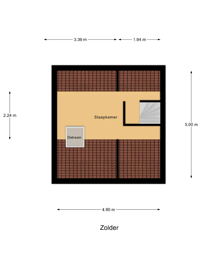 Op de tweede verdieping bevindt zich de vierde slaapkamer met dakraam en volop bergruimte achter de knieschotten.