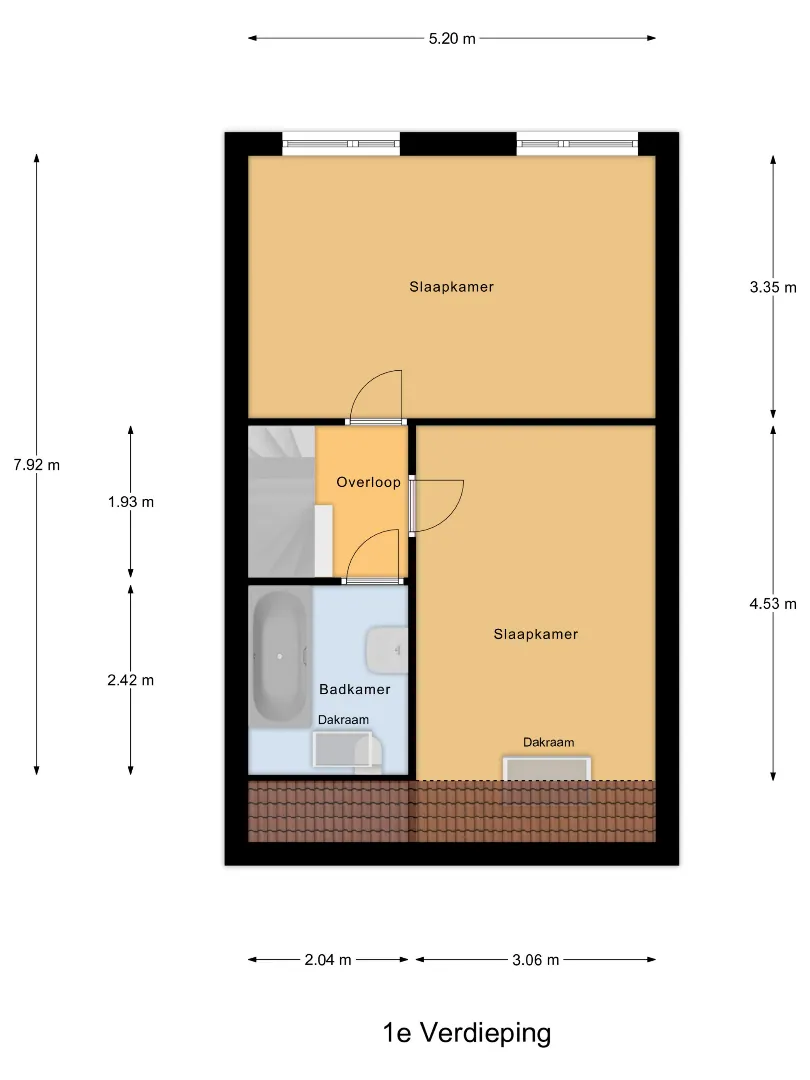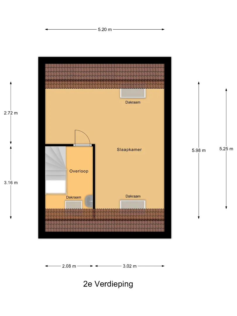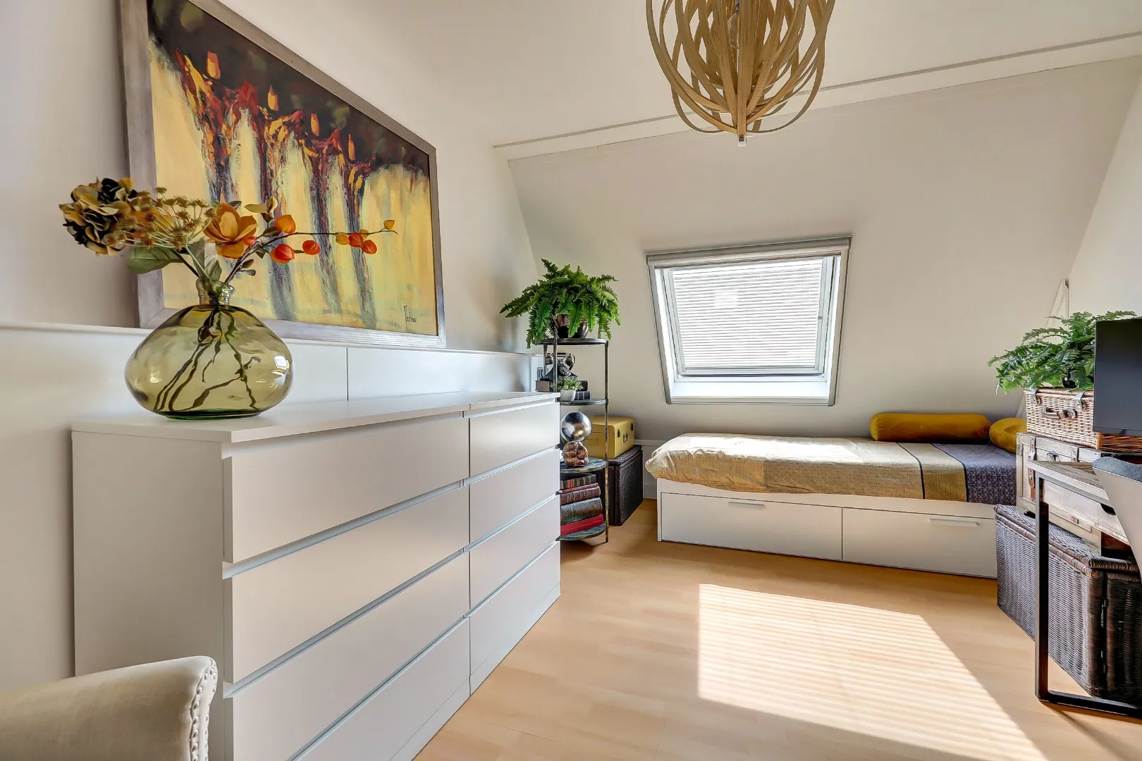 De eerste ruime slaapkamer van ca.15 m2 met dakraam, is gelegen aan de voorzijde van de woning.