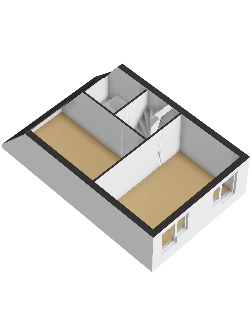 Zeer ruime derde slaapkamer ca. 22m2 met twee dakramen zorgen voor veel lichtinval en opbergruimte achter de knieschotten.