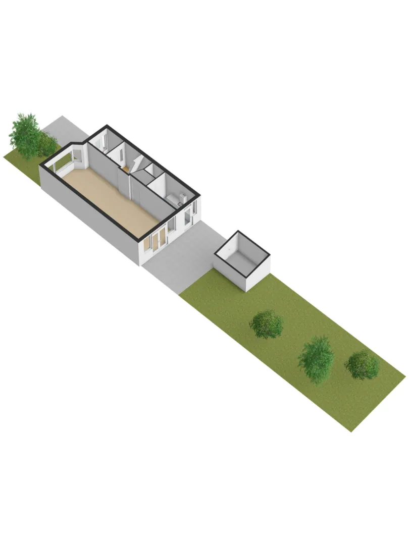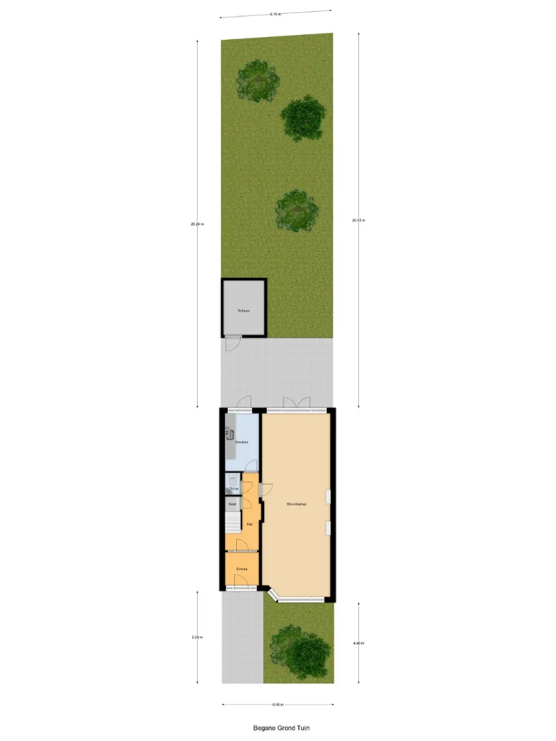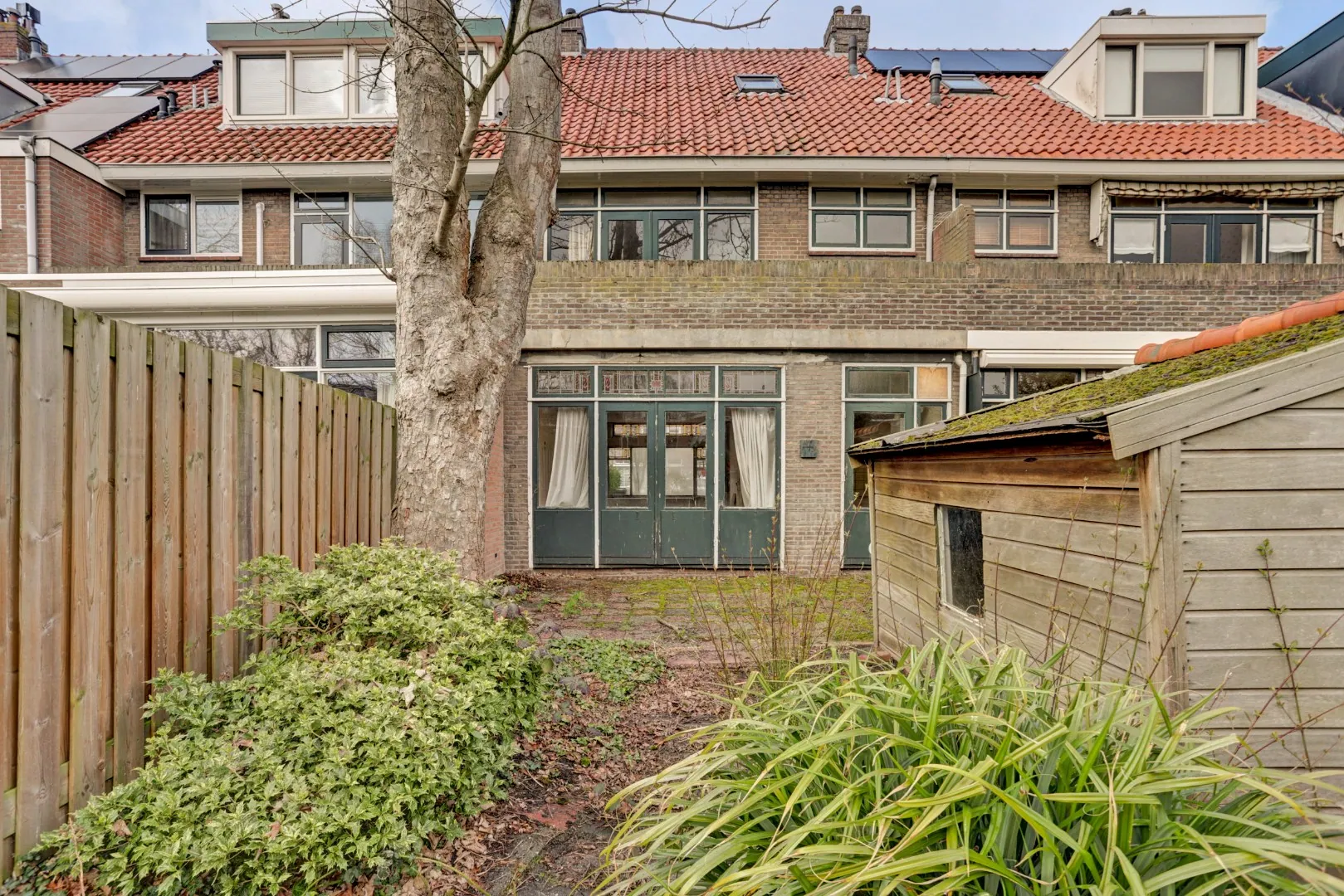 De achtertuin van 20 meter is gelegen op het zonnige zuidoosten en beschikt over een houten berging en een handige achterom.