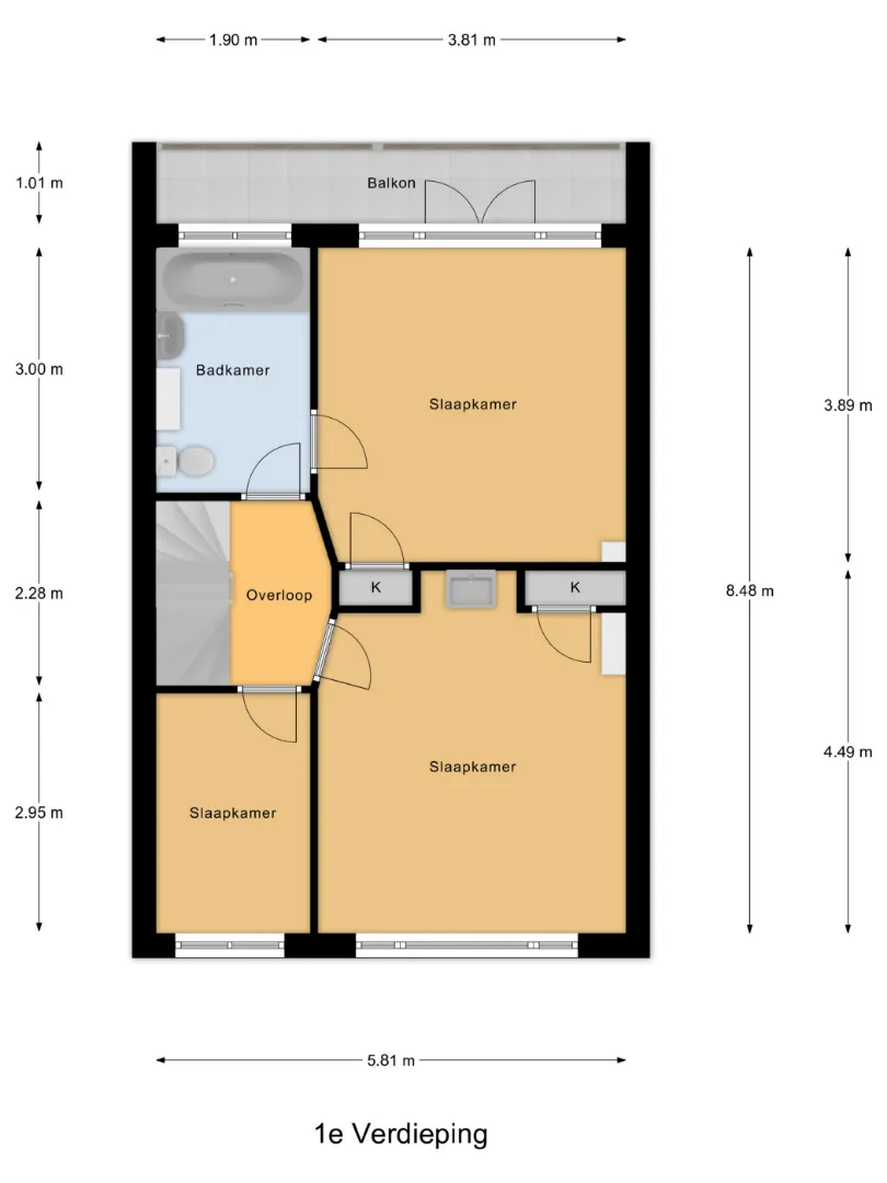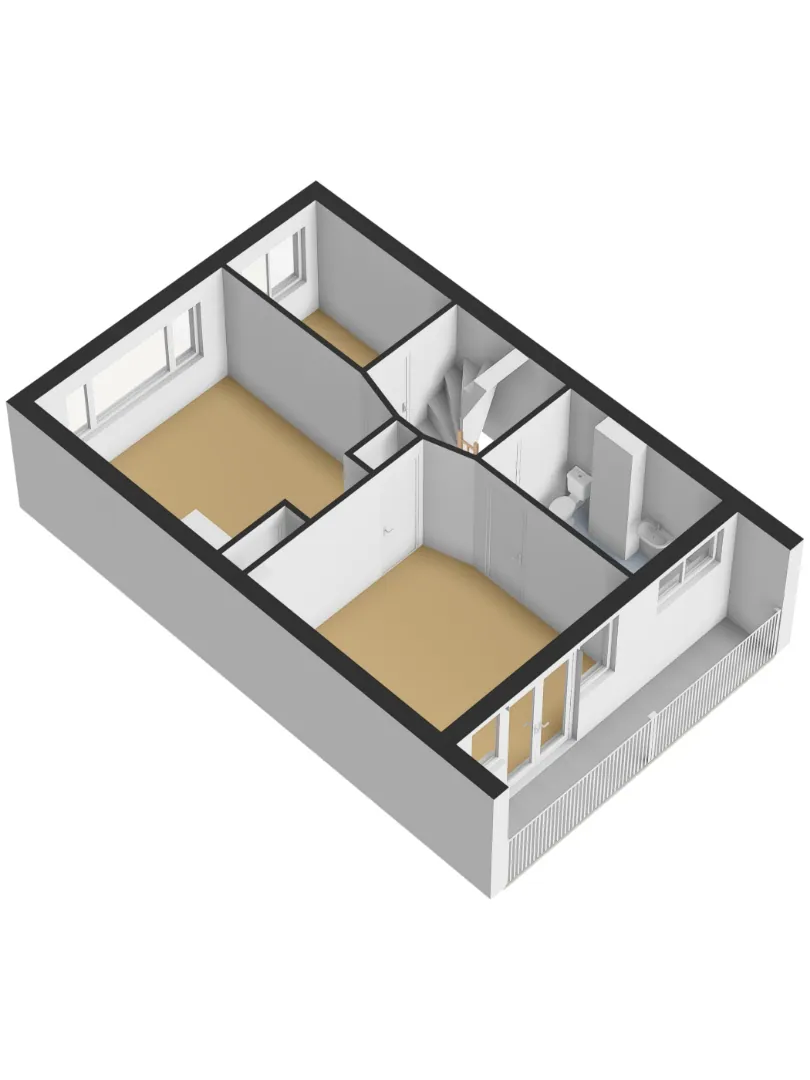 De derde slaapkamer ligt aan de achterzijde, beschikt over een vaste kast en biedt toegang tot het balkon.