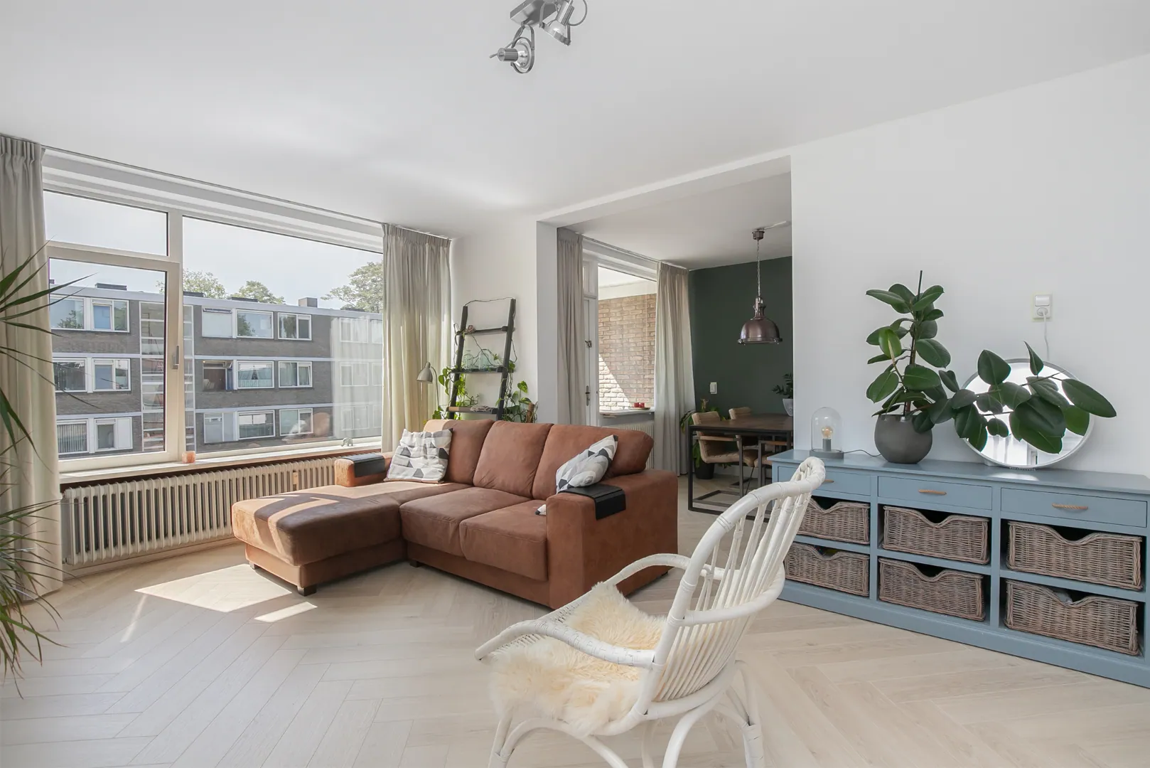 De ruime woon-/eetkamer (voorheen 2 kamers) van ca. 31 m² heeft veel lichtinval en is voorzien van een opbergkast. Vanuit de eetkamer is het zonnige balkon op het zuiden te bereiken. De slaapkamer 4.32 x 2.72 is voorzien van vaste opbergkasten. De dichte keuken is ingericht met diverse inbouwapparatuur zoals een 4-zones inductie kookplaat, vaatwasser, oven, afzuigsysteem en een koel-/vriescombinatie. Vanuit de keuken heeft u toegang tot het 2e balkon. De badkamer heeft een douchecabine, wastafel, designradiator, was-/droogaansluiting en is geheel tot aan het plafond betegeld. In het gehele appartement ligt er een visgraatvloer.