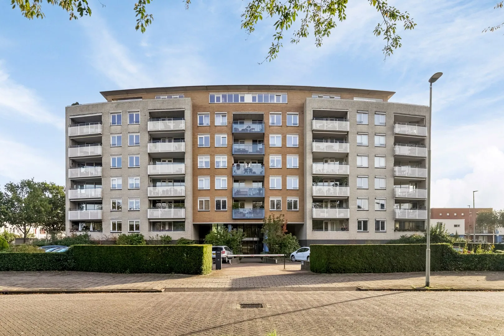 Dit 3 kamer appartement op de 6e etage heeft de beschikking over een ruim terras, berging op de begane grond en eigen parkeerplaats op afgesloten terrein.