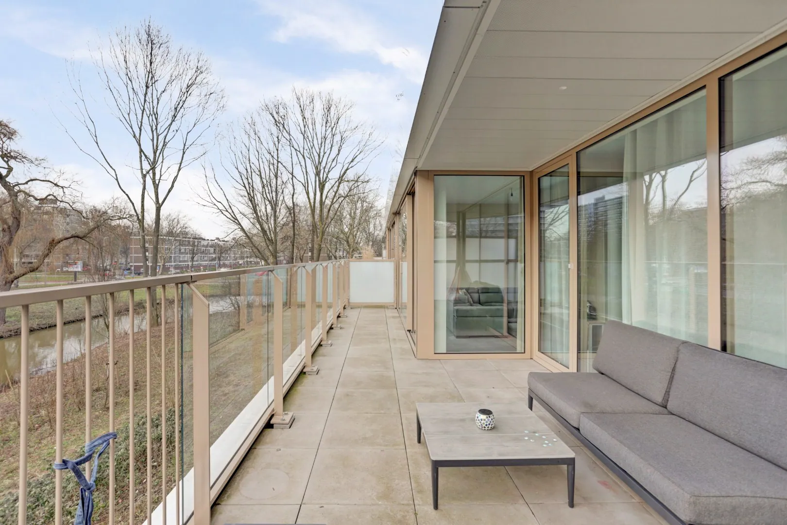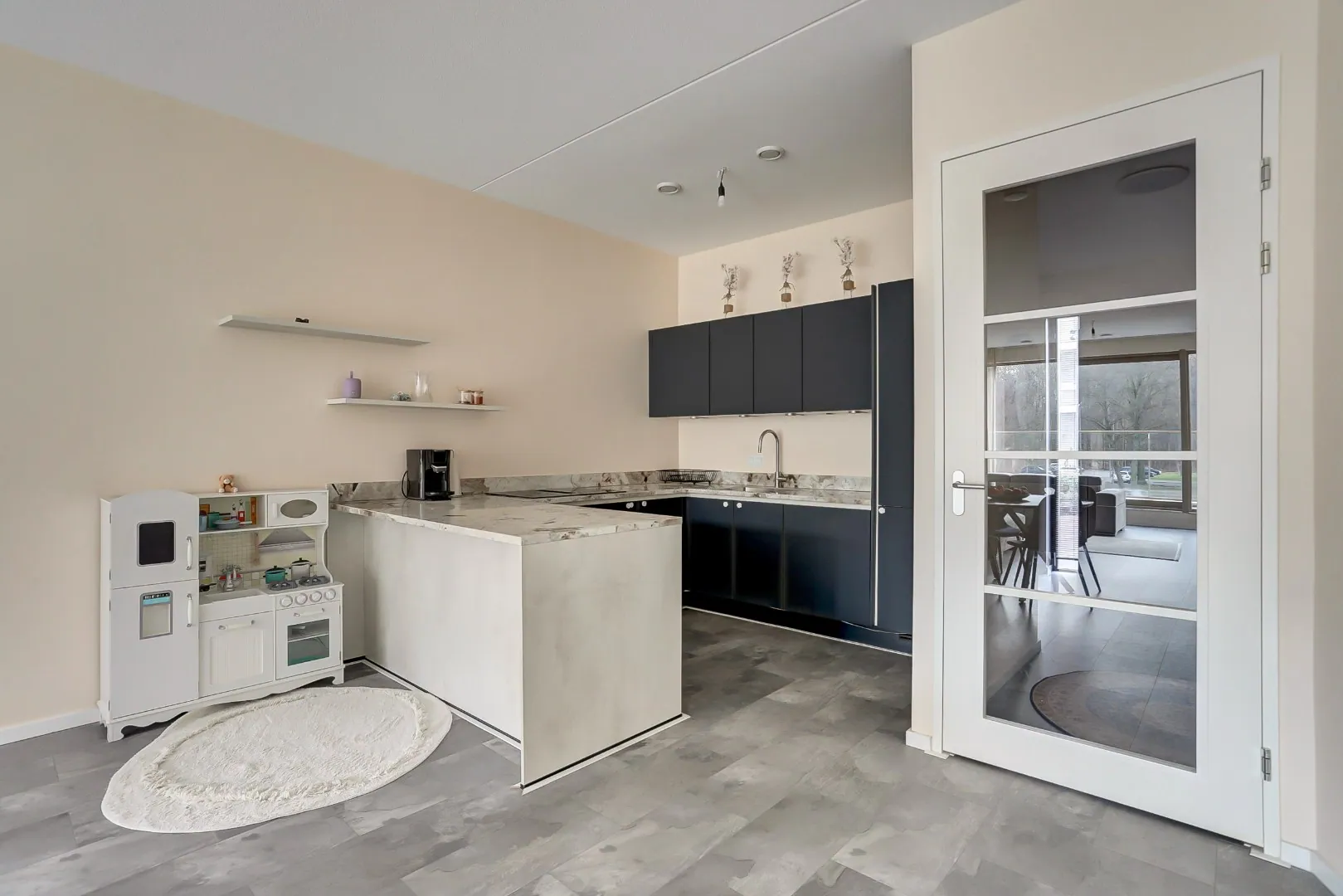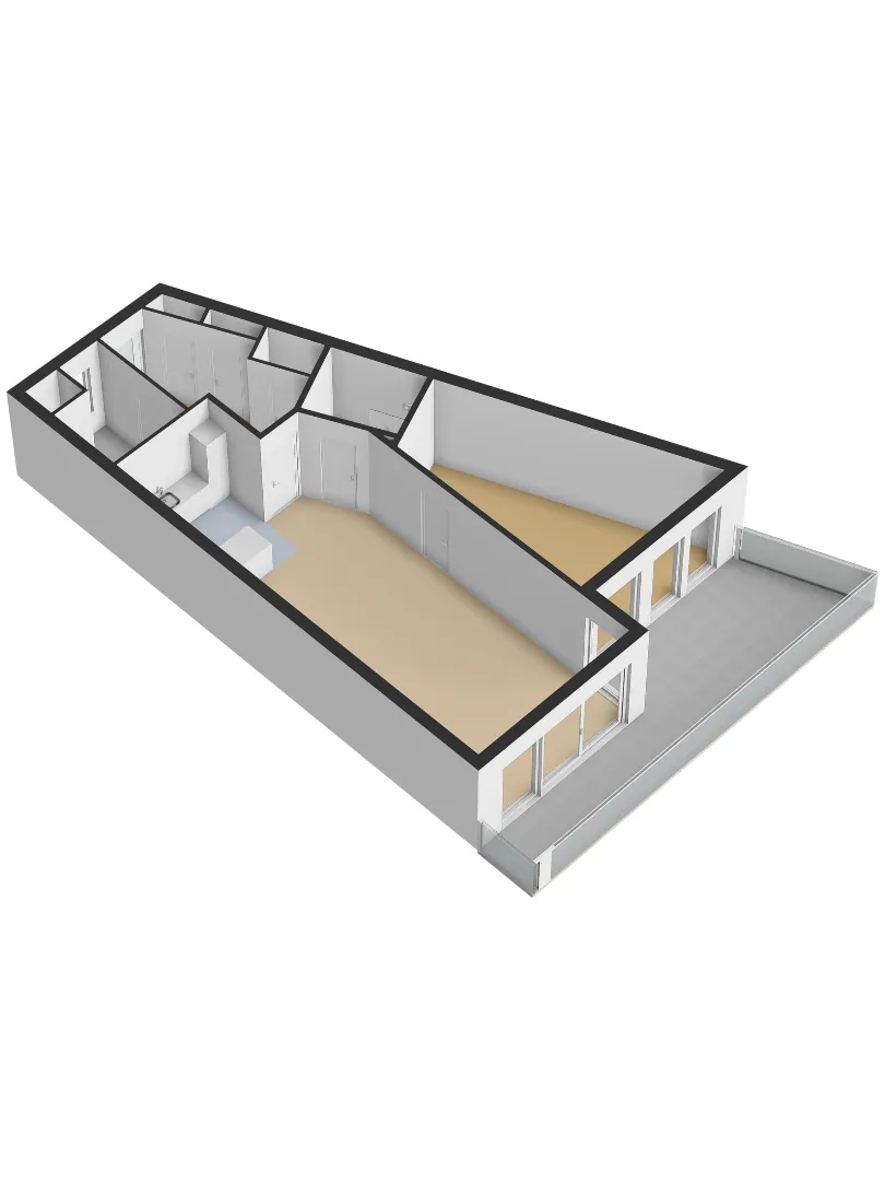Ruime living van ca. 46.6 m² bestaande uit de woonkamer met open keuken. De woonkamer is voorzien van een aluminium kozijn met schuifpui die voor fraai lichtinval zorgen. Vanuit de woonkamer is het grote en zonnige terras te bereiken. Hier kunt hier zelfs tot aan het einde van de dag nog van de zon genieten.