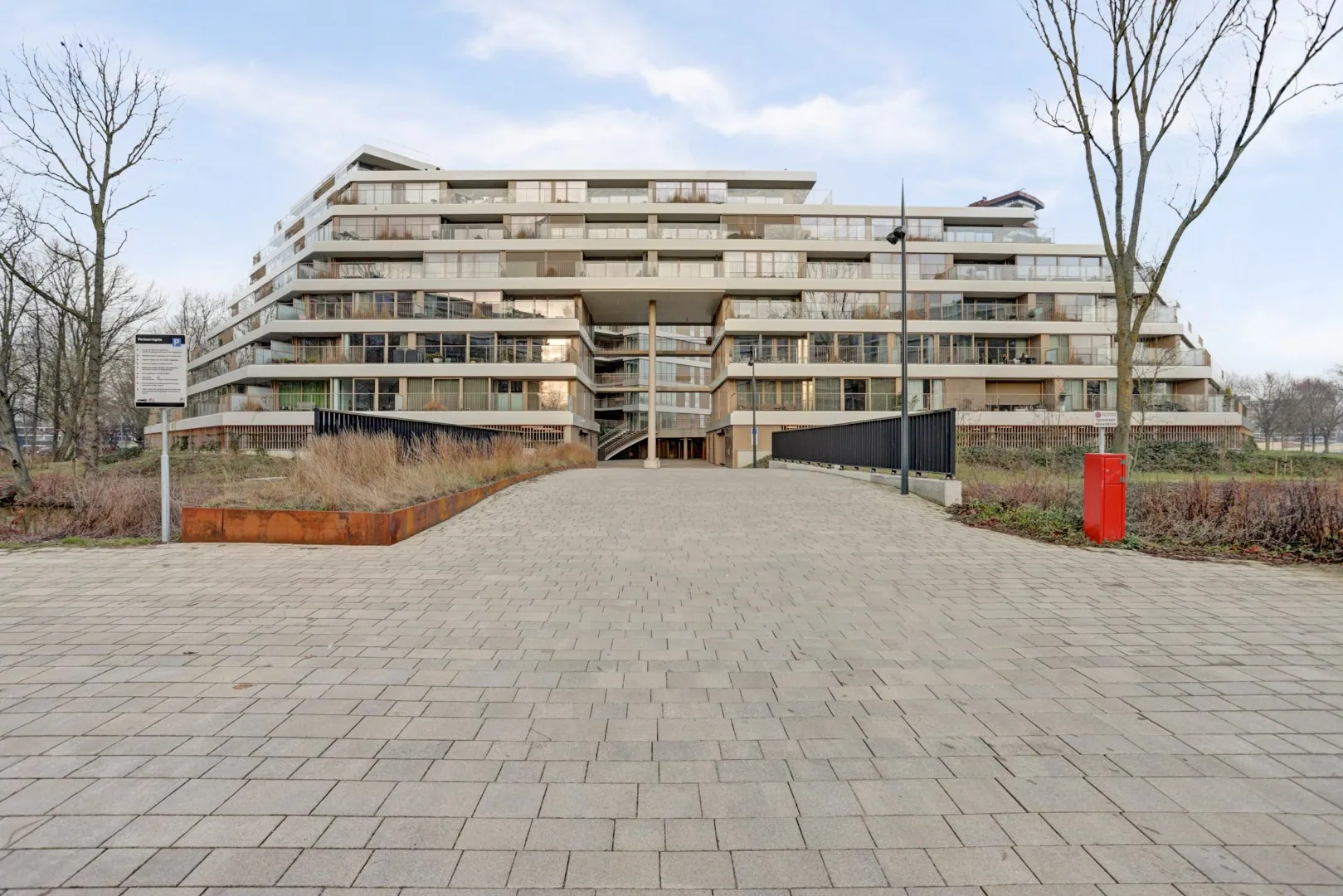 De parkeerplaats bevindt zich in de onderbouw.