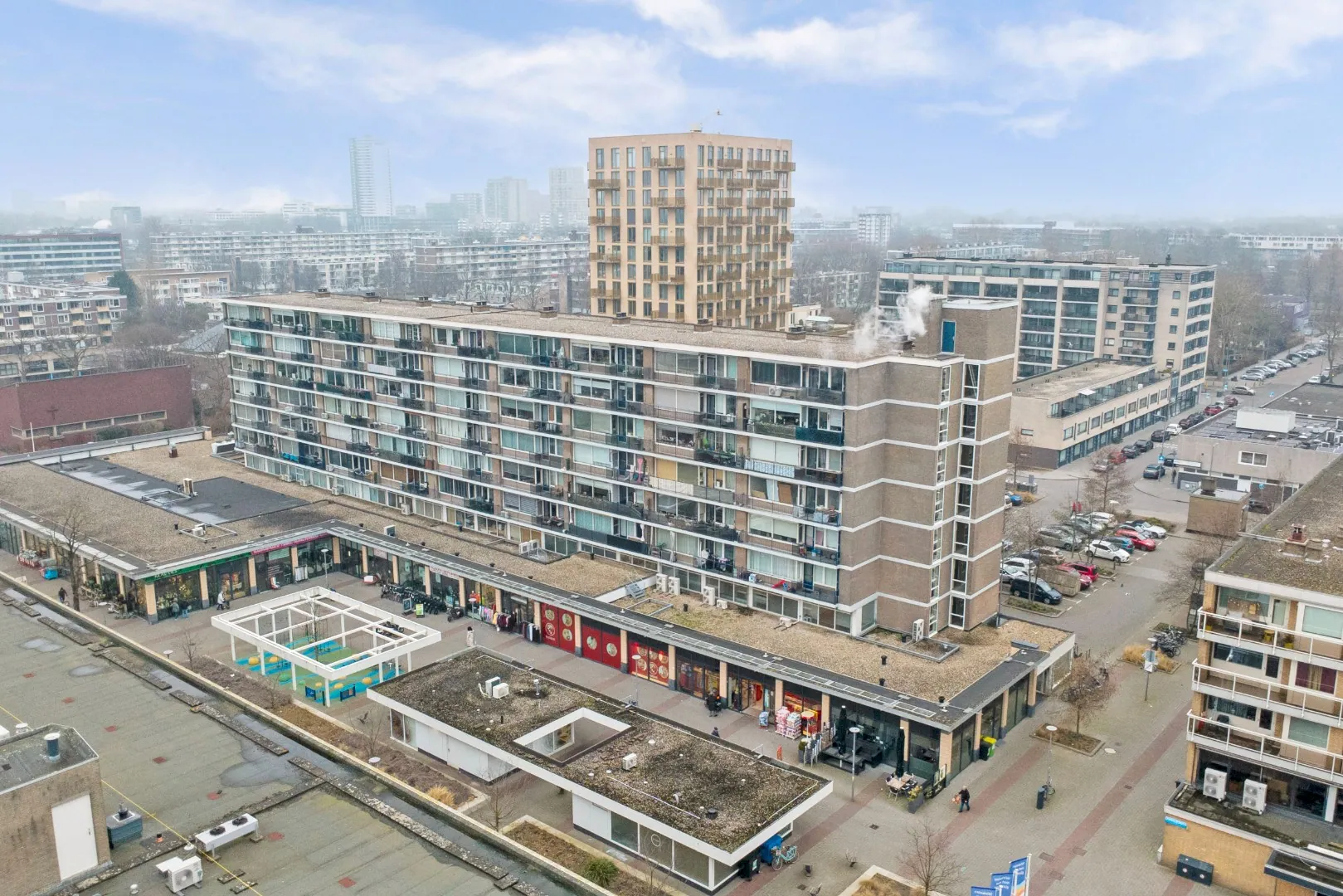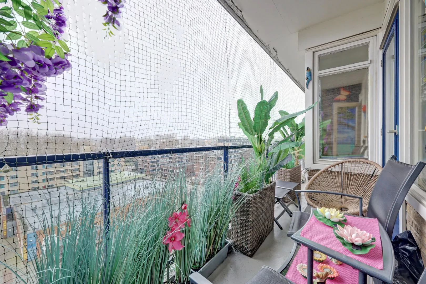 Het balkon is gelegen op het westen en biedt vaak tot in de late uren zon .Ook heeft u hier uitzicht op het winkelplein" het Lage Land" én uitzicht naar de skyline van Rotterdam.