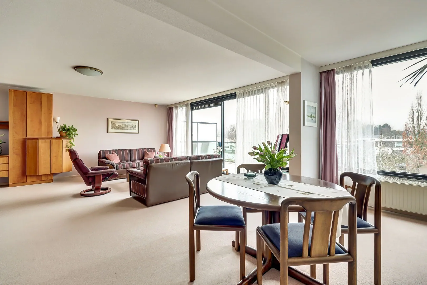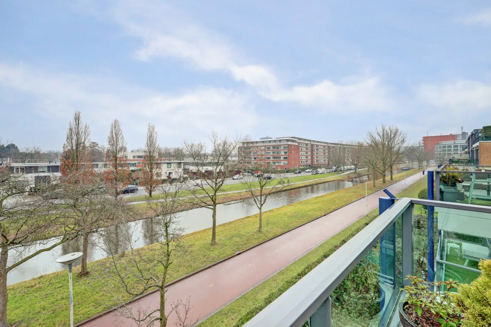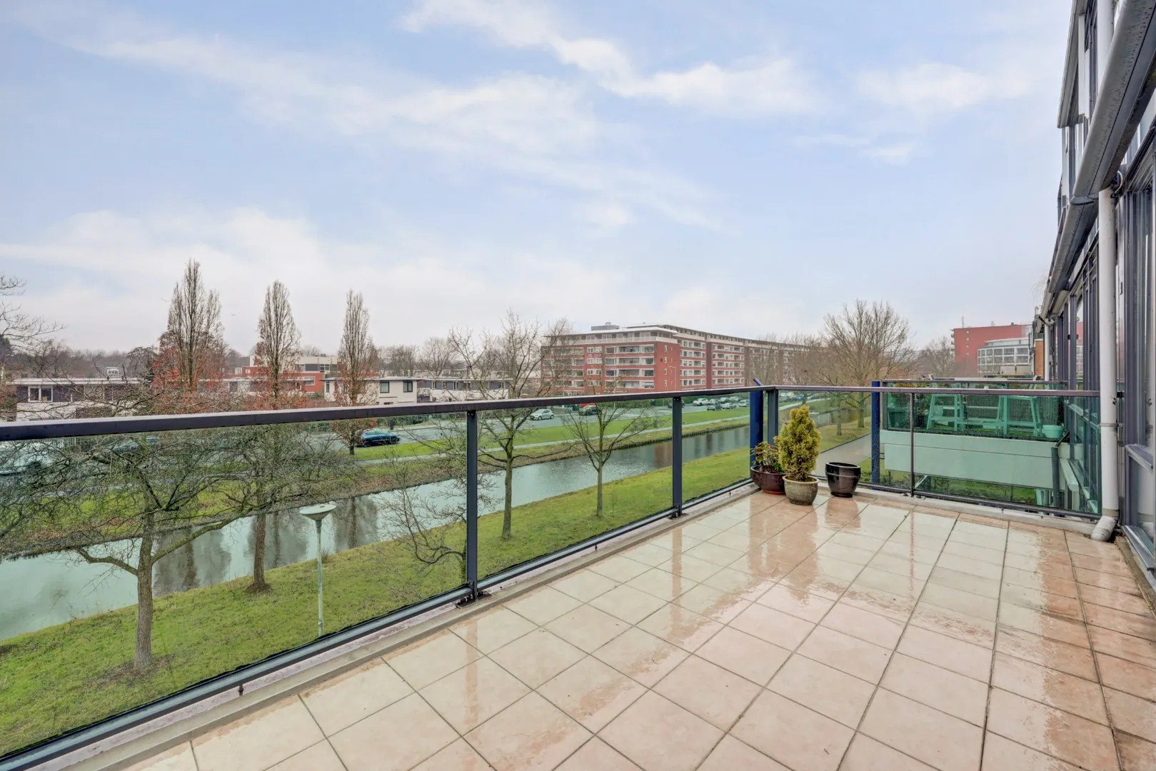 De aan de singelzijde gelegen royale woonkamer van bijna 8 meter breed heeft dankzij de grote raampartijen een prachtige zicht en lichtinval. Het zonnige balkon van bijna 15 m2 is via een aluminium schuifpui bereikbaar. Hier kunt u volop genieten tot de zonsondergang én van het uitzicht. Een heerlijke plek om tot rust te komen of om gezellig te borrelen met vrienden en familie.