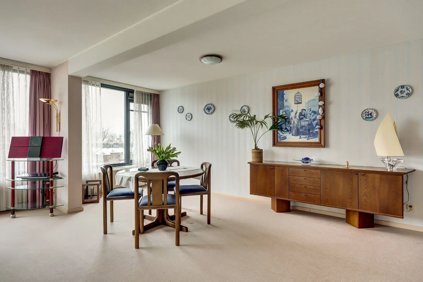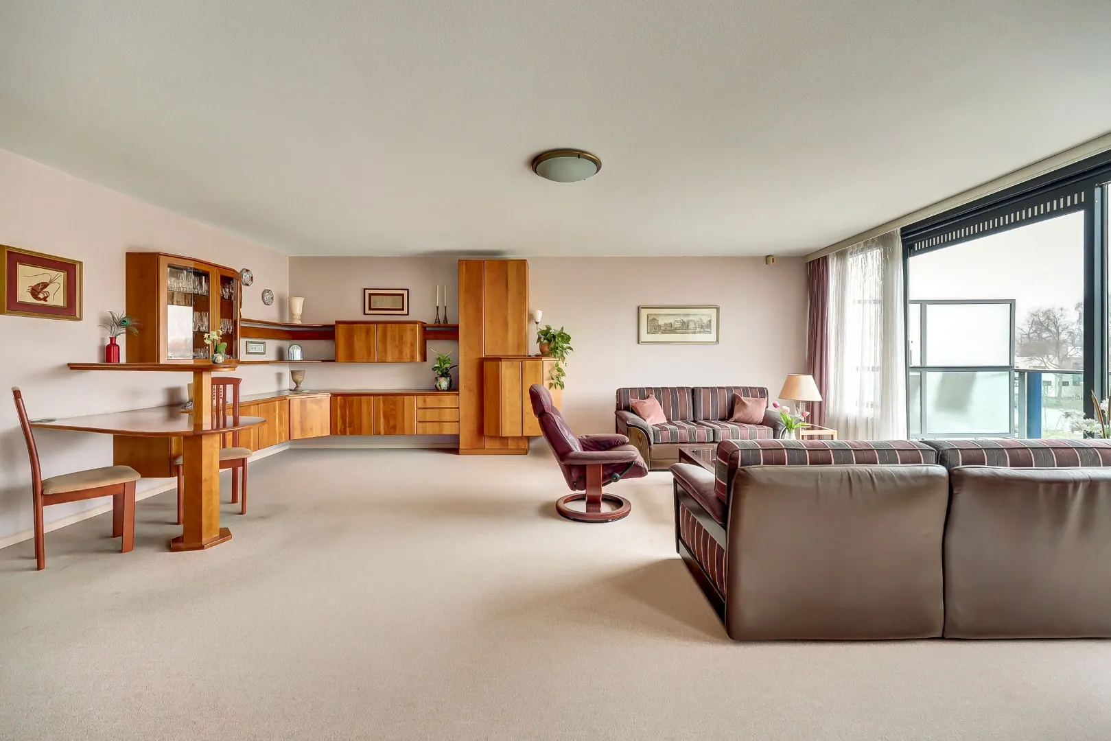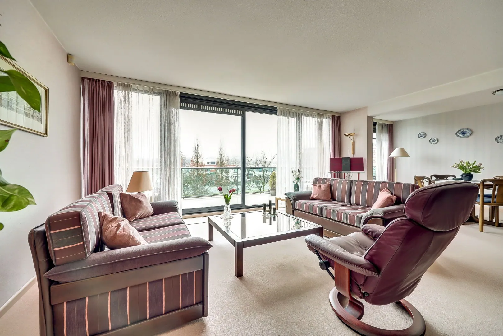 De aan de singelzijde gelegen royale woonkamer van bijna 8 meter breed heeft dankzij de grote raampartijen een prachtige zicht en lichtinval. Het zonnige balkon van bijna 15 m2 is via een aluminium schuifpui bereikbaar. Hier kunt u volop genieten tot de zonsondergang én van het uitzicht. Een heerlijke plek om tot rust te komen of om gezellig te borrelen met vrienden en familie.