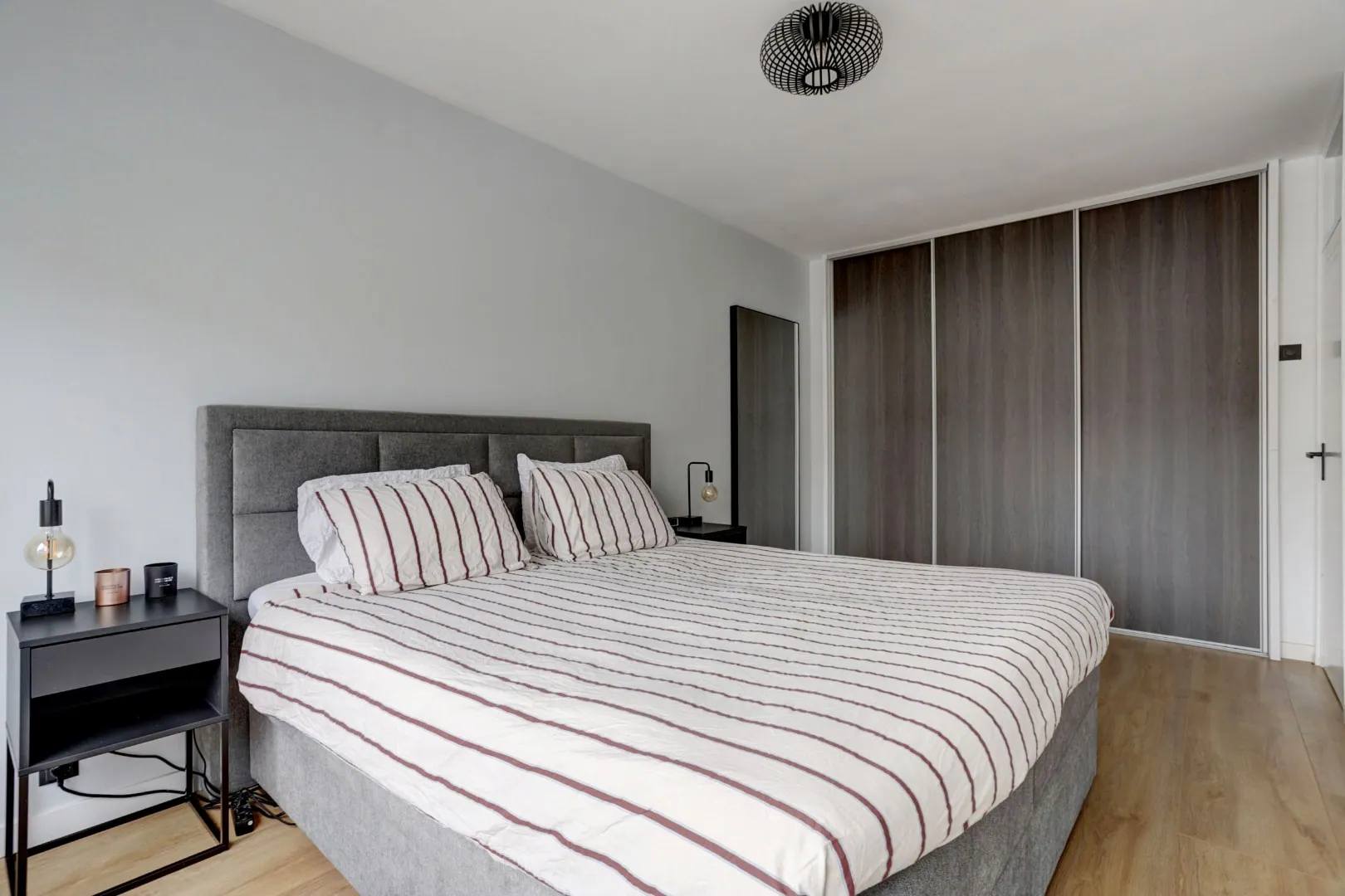 De eerste slaapkamer is gelegen aan de voorzijde van het appartement en beschikt over een vaste schuifkastenwand.