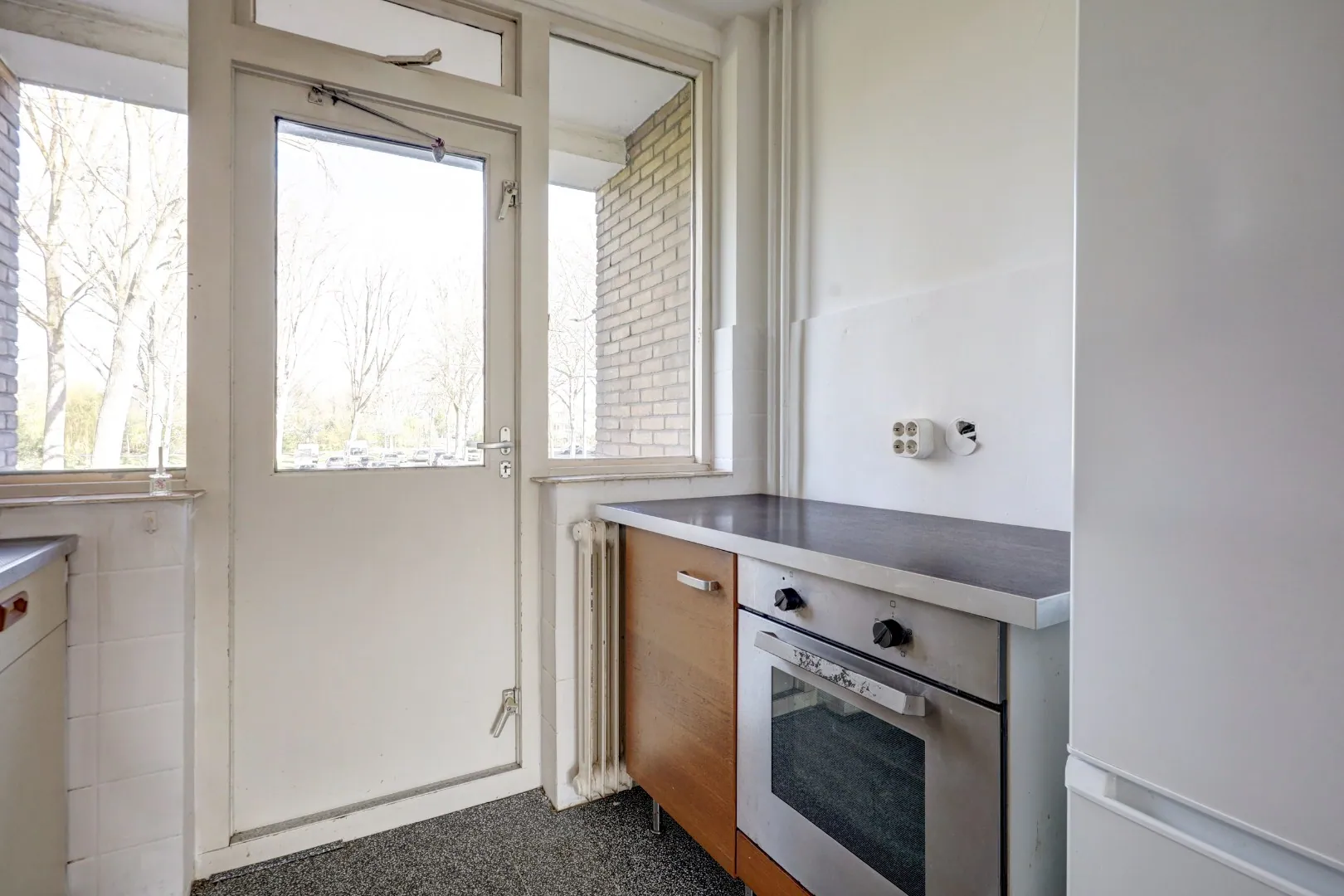 Vanuit de keuken heeft u toegang tot het kleinere balkon die gelegen is aan de voorzijde van het appartement.