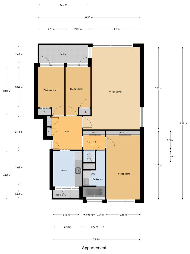 4-kamer appartement op de 1e verdieping, met 2 balkons, berging in de onderbouw en gelegen op eigen grond!