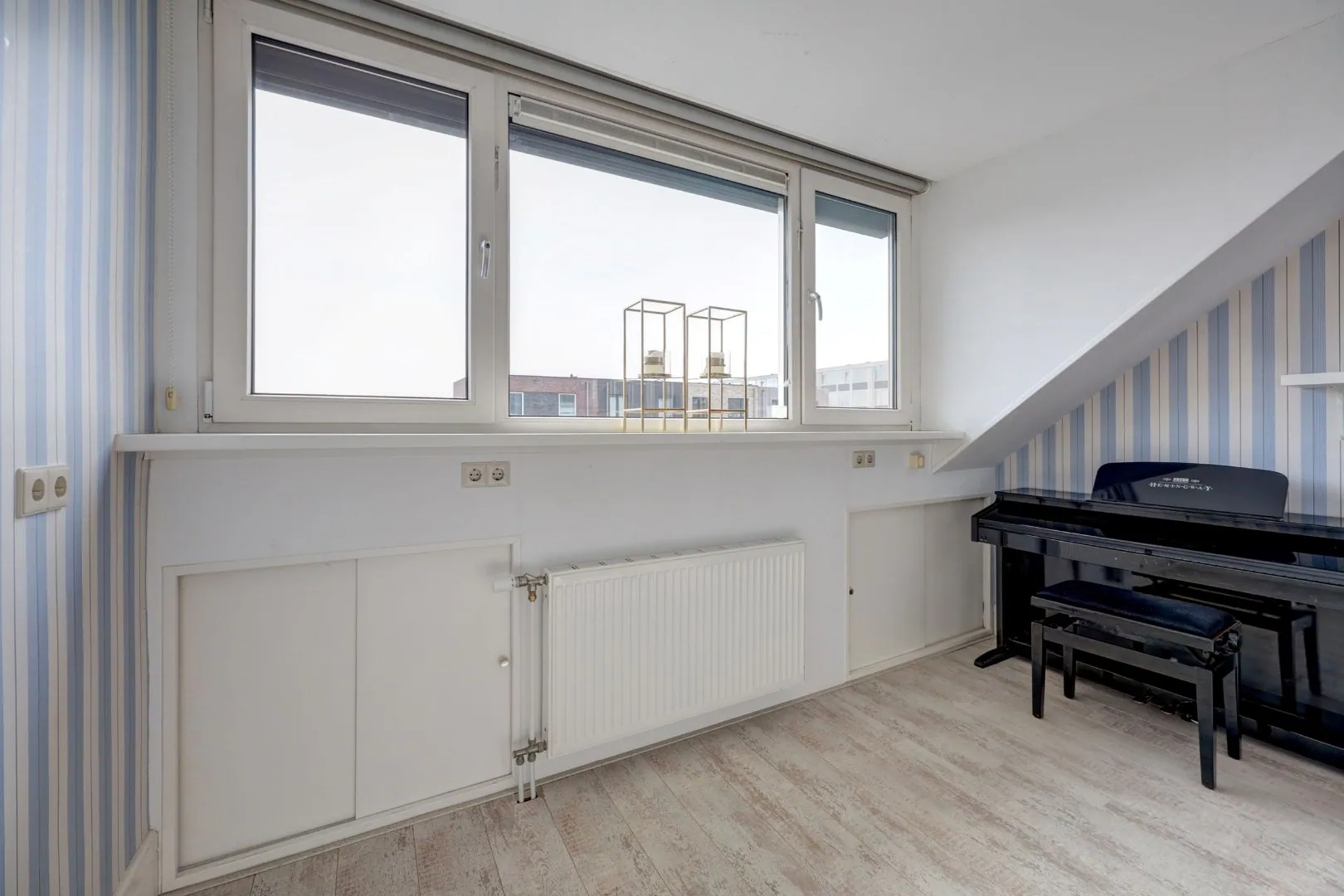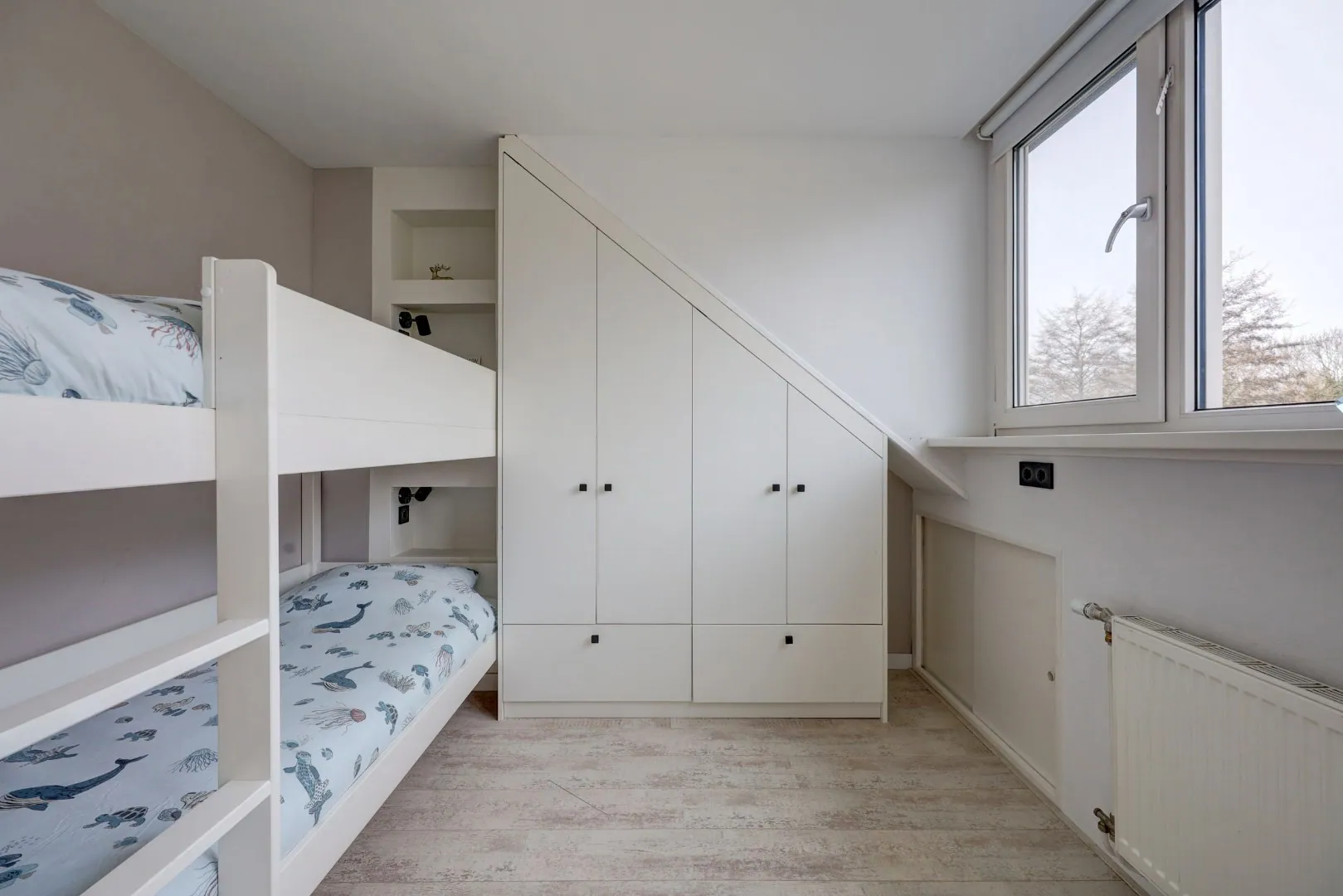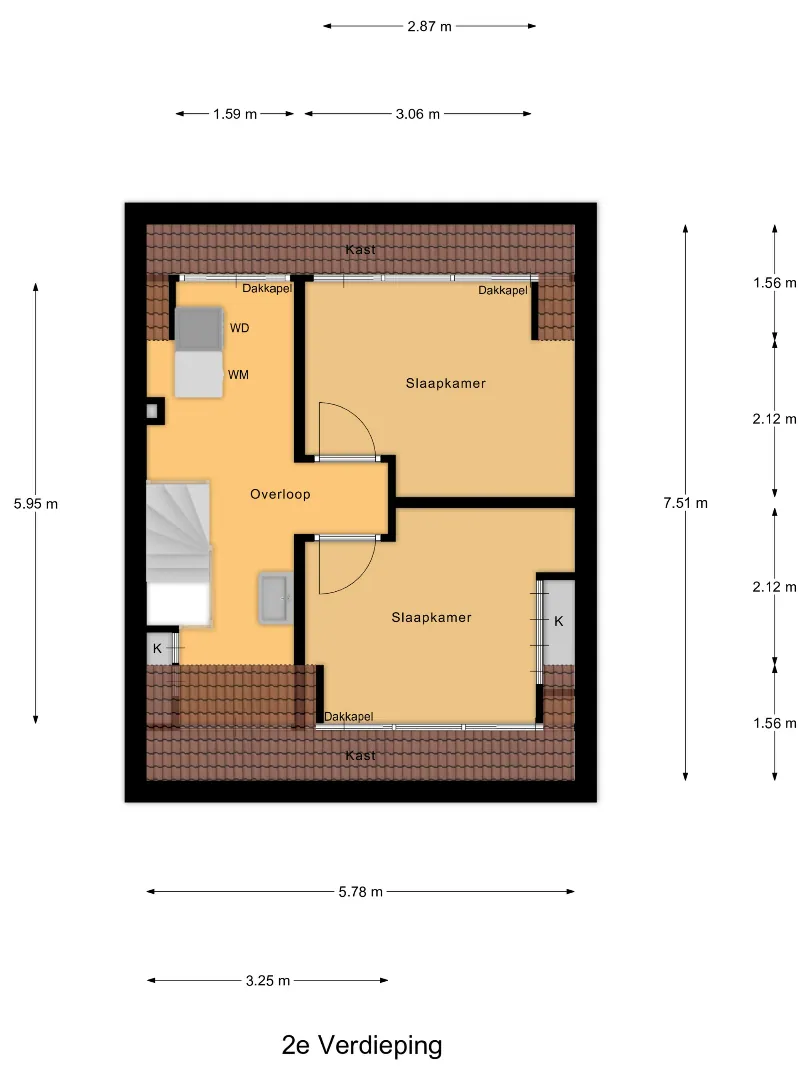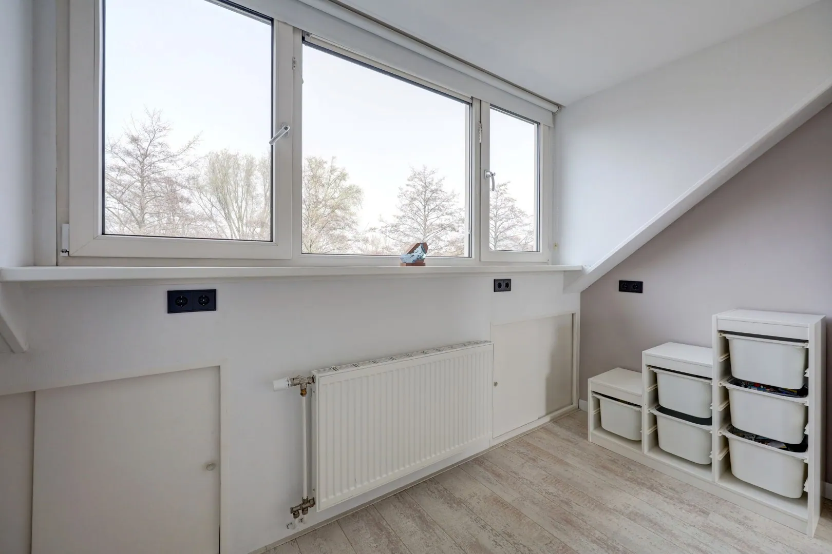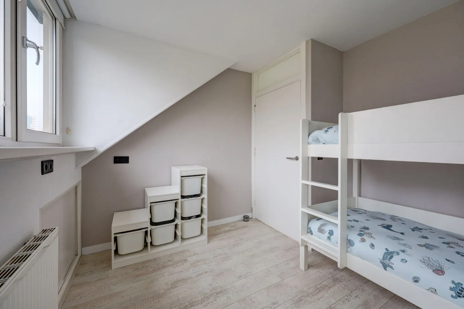 Hier vindt u nog twee volwaardige slaapkamers, beide met een dakkapel en extra bergruimte achter de knieschotten.